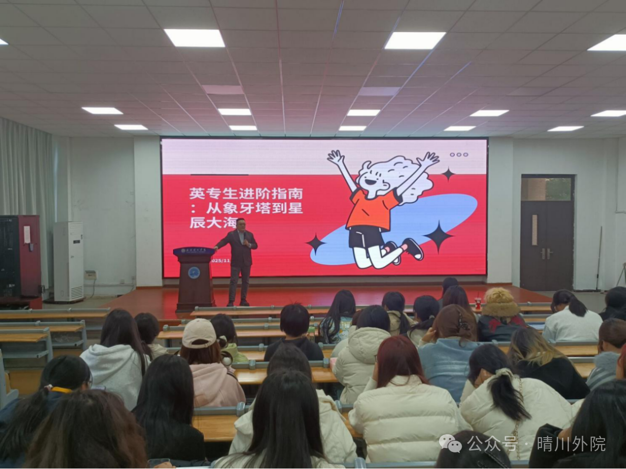 为进一步帮助2025级学生明确学习目标、规划成长路径,11月25日下午,外国语学院在综二105报告厅举办以“如何做好学业规划”为主题的新生入学教育活动。学院党总支书记刘泽政老师、翻译系黄欣老师、优秀校友李佳琦同学应邀出席,2025级英语、商务英语和学前教育专业学生参加,活动由辅导员陈哲老师主持。