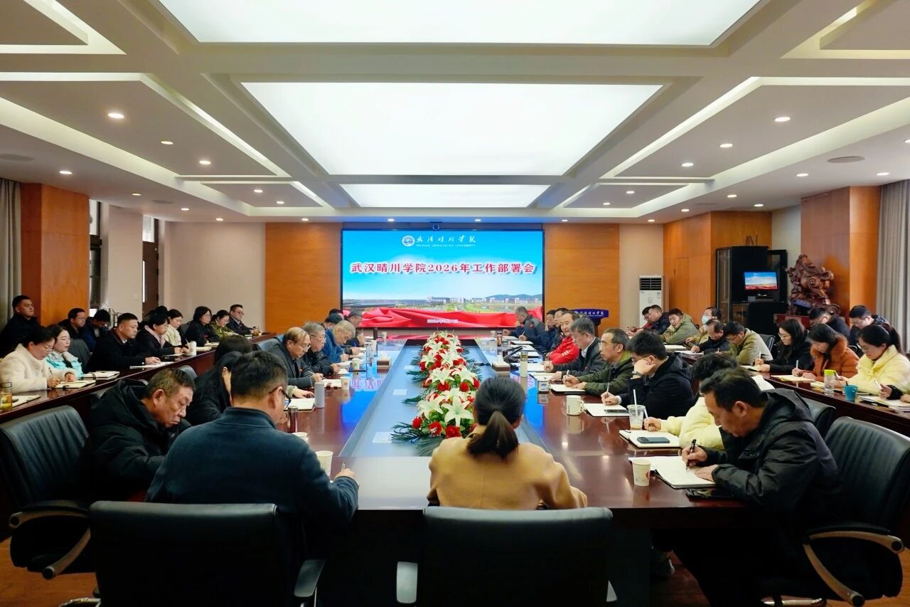 3月4日,武汉晴川学院召开2026年工作部署会,全面擘画“十五五”开局之年高质量发展新蓝图。董事长、校长汪彬教授出席会议并讲话,党委书记翟细春、常务副校长夏力教授、副校长彭宇文教授等全体校领导,各二级学院院长,全体中层干部参加。会议由党委书记翟细春主持。