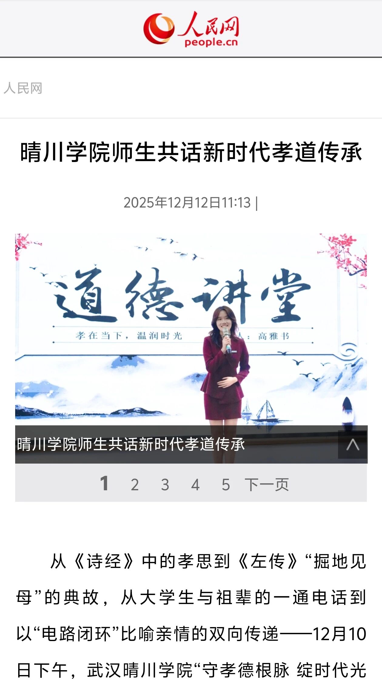 《晴川学院师生共话新时代孝道传承》