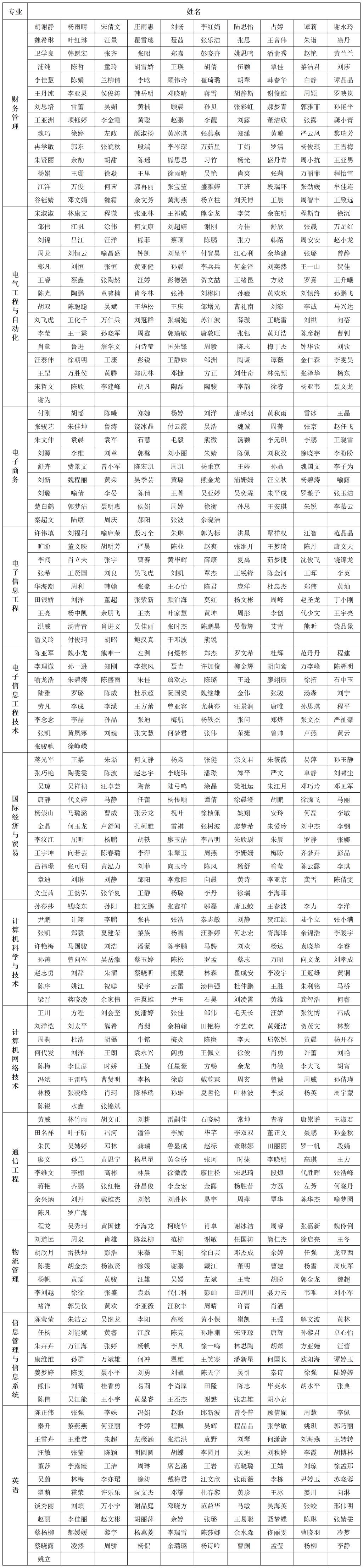武汉晴川学院2007级校友名录