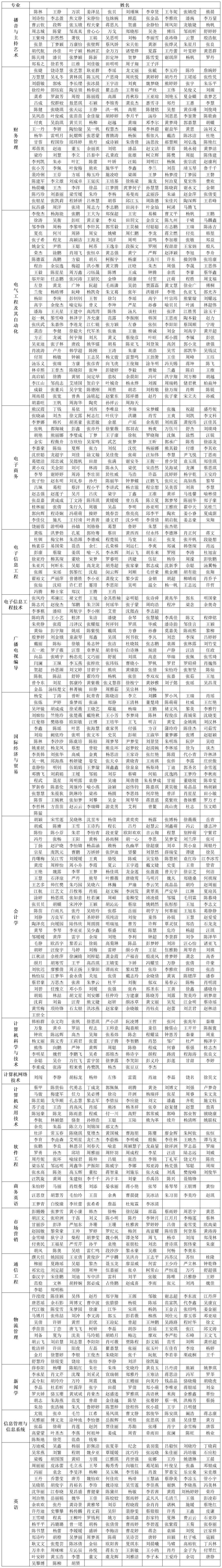 武汉晴川学院2014级校友名录